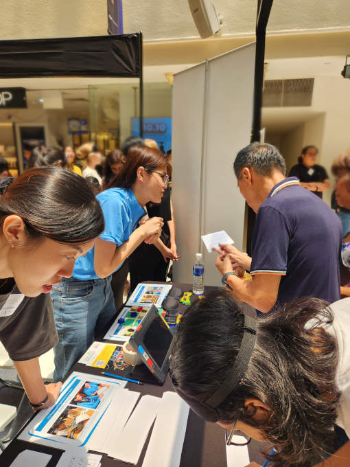 We had a range of fun activities catering to all ages (decode the code, a braille activity; tactile tic tac toe; picture search using handheld magnifier) to demonstrate how our students with visual impairment can access information and learn.