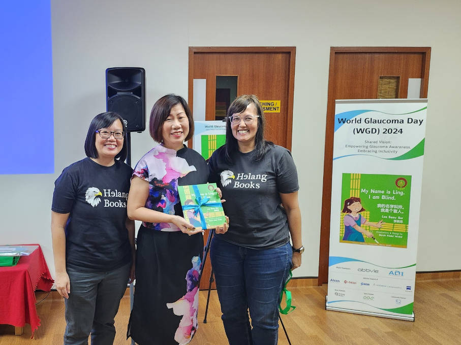 Ms. Ku Geok Boon, CEO of SG Enable, received a token of appreciation from the staff of Helang Books publisher.